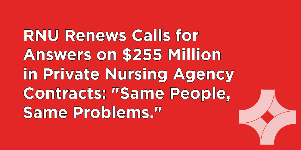 RNU Renews Calls for Answers on $255 Million in Private Nursing Agency Contracts: “Same People, Same Problems”
