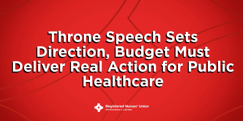 The Registered Nurses’ Union Newfoundland and Labrador (RNU) says today’s Throne Speech outlines the right goals for healthcare, but Budget 2026 must now deliver concrete action, funding, and measurable results.
